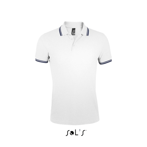 1 kép SOL'S PASADENA férfi galléros póló kontrasztos csíkokkal SO00577, White/Navy-2XL