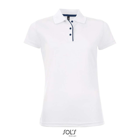 SO01179 SOL'S Női rövid ujjú galléros sport póló, Minőség100% poliészterStílusRövid ujjúElülső pánt 3 gombbalKontrasztos csík a gombolópánton, az oldalsó sliccelésen és a nyakpántonSzublimációra alkalmas SMLXL2XLTesthossz (A)6365676971Mellszélesség (B)