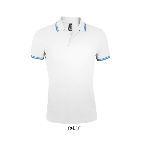 SOL'S PASADENA MEN - POLO SHIRT Minőség100% gyűrűs fonású pamutStílus1x1 bordás gallér és mandzsettákA nyakán szalaggal megerősítveRövid ujjúKontrasztos csíkok a galléron és a mandzsettákonGombolópánt 3 színazonos gombbalIlleszkedő szabásOldalvarrottOl