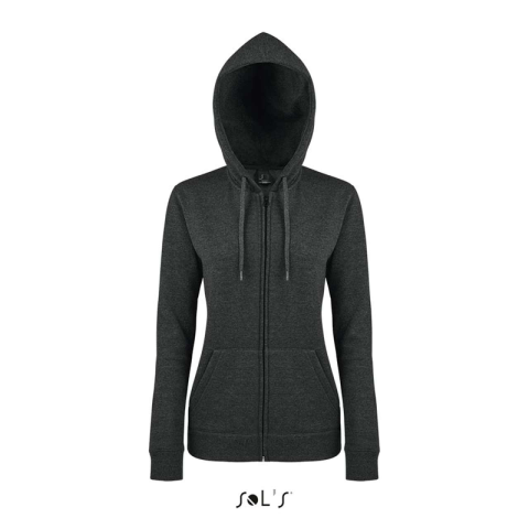 SOL'S SEVEN WOMEN - JACKET WITH LINED HOOD Minőség50% gyűrűs fonású pamut - 50% poliészterStílusElasztános passzé szegély és mandzsettákBevarrt ujj2 kenguru zsebBélelt kapucni színazonos húzózsinórralRejtett cipzárIlleszkedő szabásOldalvarrott SMLXLTes
