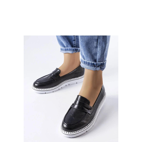 Félcipő Solea MM-207072. Színe: Fekete A Bloomsburg Sneakers elegáns cipők az ideális kombinációja a stílusnak és kényelemnek. Fekete perforált műbőrből készültek, kerek orral és alacsony sarokkal. A cipő belseje puha, természetes bőr talpbetéttel van bélelve, extra kényelmet biztosítva. A becsúsztatható zárórendszer könnyíti a felvételt, a fehér gumi talp pedig modern megjelenést kölcsönöz nekik. Kiváló mindennapi st