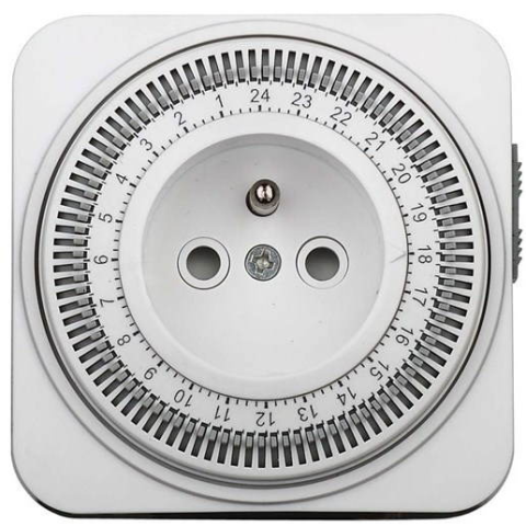 Időkapcsoló - 24 órás kapcsolóóra, 15 perces minimális időközök, gyerekzárral, 230V/16A, 50Hz Ez egy egyszerű és hasznos mechanikus időzítő, gyerekzárral ellátva, amely remek segítséget nyújt abban, hogy készülékei a megfelelő időben induljanak el. Az időzítőt akár 24 órás eltérésekkel, 15 per