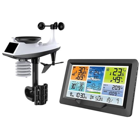Időjárás állomás - professzionális, vezeték nélküli, beltéri és kültéri használatra, előrejelzéssel és valós idejű időjáráskövetéssel, ismételt ébresztés és ébresztőóra, mért értékek: légnyomás, szélsebesség és irány, hőmérséklet, páratartalom, idő és dátum megjelenítése, vezeték nélküli érzékelő hatótávja 100 m, maximum 3 vezeték nélküli érzékelő csatlakoztatható, hálózatról és elemmel is működtethető, Google Assistant és A