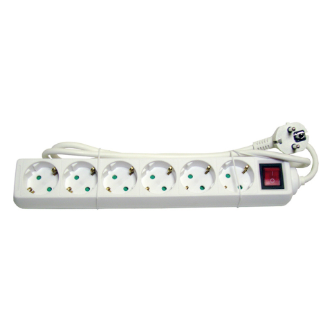 SOLLEYSEC Földelt 6-os elosztó 1,5 m-es kábel, kapcsolóval (GLK 6-1,5/WH) Hossz 3 m, fehér szín, Belső ér (mm2) 3×1, Maximális terhelhetőség 2300W