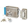 SOLLEYSEC Rátét zár, elektromos, 12Vdc/3A, jobbos kivitel, rozsdamentes polírozott fém ház, , zárbetét, nyomógomb, 3db kulcs, jobbos kivitel