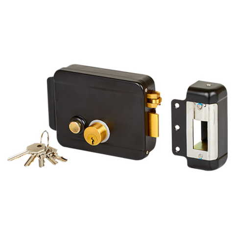 SOLLEYSEC Rátét zár, elektromos, zárbetéttel, 9-12Vdc/3A, jobbos kivitel, 5db kulcs, kioldó gomb.
