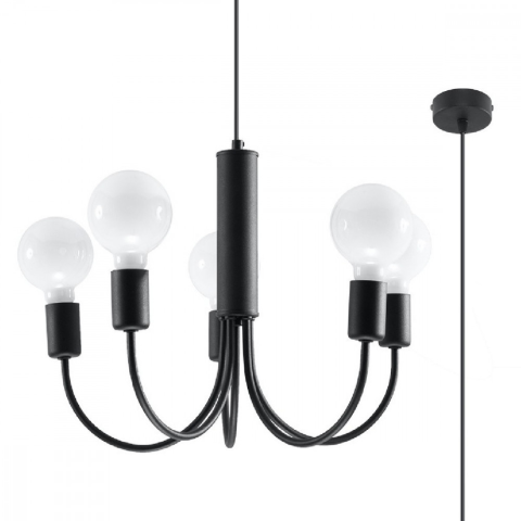 1 kép Sollux LED függő mennyezeti lámpa PICCOLO 5xE27 csillár fekete SOLLUX