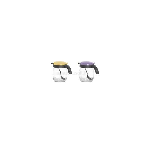 1 kép SOLMAZER IRIS üveg fűszertartó fogóval, kanállal 425ml, homok vagy lila színű (131042-580)