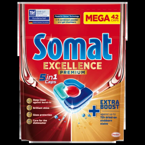 1 kép Somat Excellence Premium 5in1 gépi mosogatószer kapszula 42 db 819 g