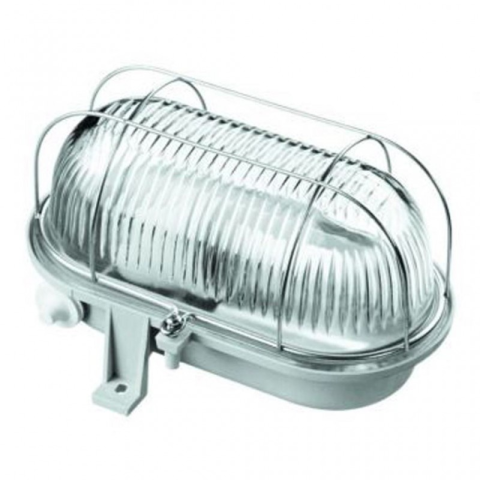 Ovális lámpa fém védőráccsal, szürke színben. IP44. E27 max. 60W. Fényforrás nélkül.