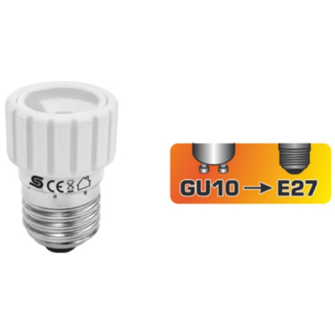 - Lehetővé teszi GU10 csatlakozású energiatakarékos fényforrások használatát hagyományos foglalatokban. - GU10-> E27 / normal - 250 V / 50 Hz - max. 2 A