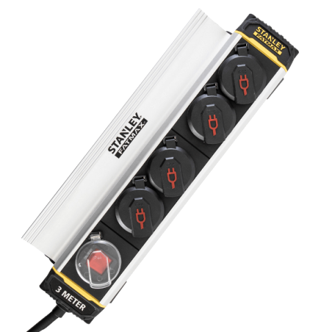 A STANLEY 4-es hálózati elosztó kapcsolóval, csiptetős kivitelben készült, így asztallapra vagy létrára is csiptethető, ezzel is megkönnyítve a használatot. A STANLEY hálózati elosztó alumínium háza masszív és robusztus kialakításának köszönhetően hosszú