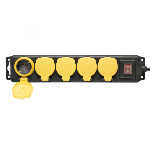 Az NVO 05K-5/BK/1,5 Hálózati elosztó kapcsolós, masszív, kültéri kivitelben készült 5 m hosszú H05RR-F 3G1,5 mm² fekete gumikábellel. A termék IP 44 védettségű, a zárófedeles aljzatok által kültéren is biztonsággal használható. Az elosztó 5 db gyerekv