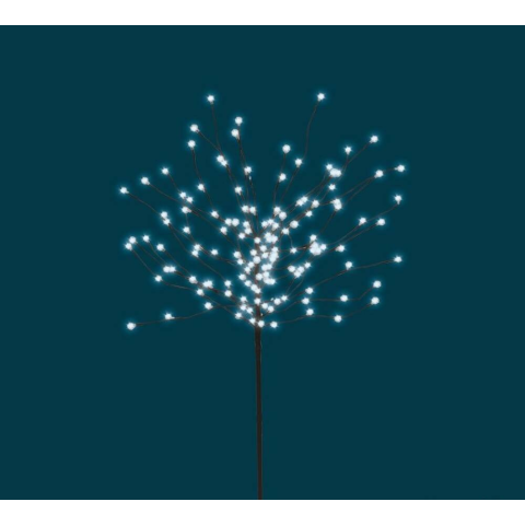 - beltéri, leszúrható kivitel - 140 db hidegfehér LED - PVC gömbökkel - ízlés szerint beállítható ágak - 150 cm magas - 3 m hálózati vezeték
