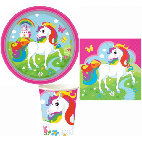 RAKTÁRRÓL AZONNAL! Unikornis party szett 36 darabos Tartalama: - 1x20 db szalvéta 33x33 cm - 1x8 db pohár 250 ml - 1x8 db tányér 23 cm A szülők és a gyerekek kedvenc party szettjei A szülők dolgát megkönnyítjük az előre összeválogatott party szettekkel