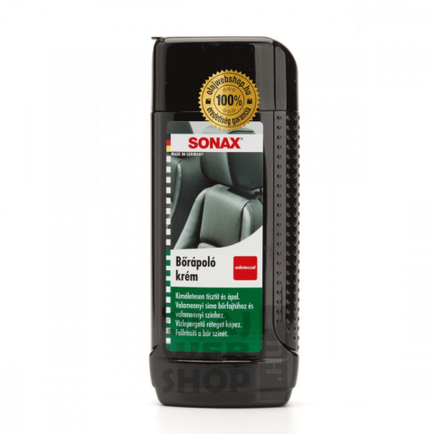 Sonax bőrápoló krém (250 ml) Kíméletesen tisztít és ápol minden sima bőr felületet (autó, motorkerékpár, bútor, ruházat, stb.). Könnyedén eltávolítja a koszt, az olajat és a zsírt. Felfrissíti a bőr színét és illatát. A bőrt puhává és vízlepergetővé tesz