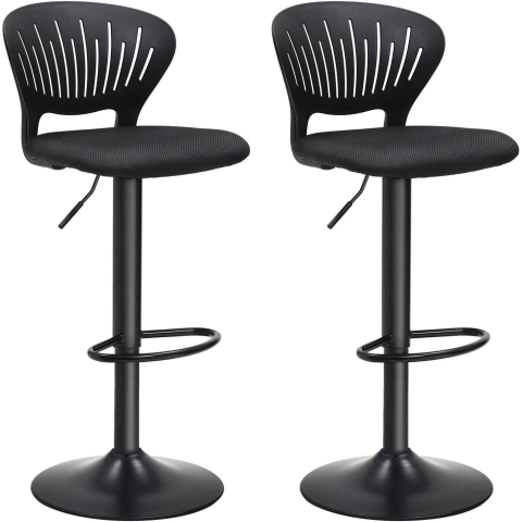 SONGMICS 2 db állítható magasságú bárszék készlet háttámlával, párnázott ülés lábtartó lélegző hálós 360°-ban forgatható fekete: