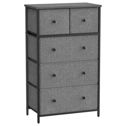 Songmics 5 Szövet fiókos Komód, Tárolószekrény, szürke és fekete bútor termékleírás