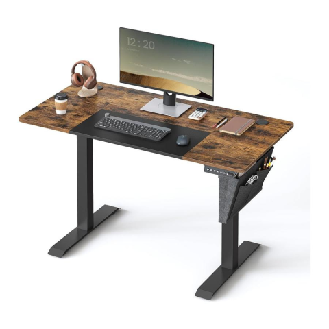 SONGMICS Állítható magasságú elektromos íróasztal, 60 x 120 x (72-120), teljesen állítható, toldott felső, memória funkció 4 magassággal, vintage barna/alapfekete:
