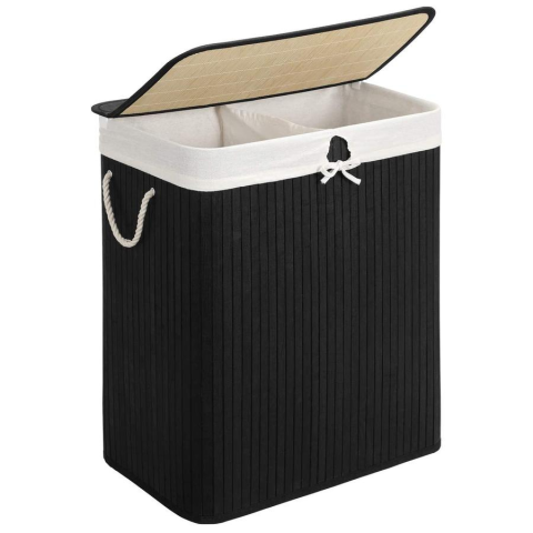 Songmics Bambusz szennyeskosár, 100 L-es szennyestartó, fekete bútor 1 kép