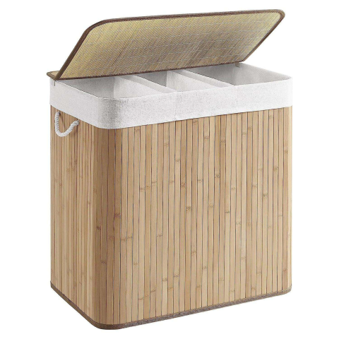 Songmics Bambusz szennyeskosár fedéllel és fogantyúkkal, 150 literes bútor termékleírás