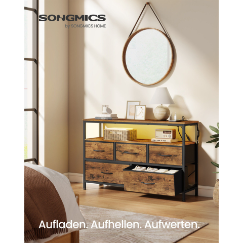 1 kép Songmics BELLAH Fiókos Szekrény LED Világítással és Beépített Konnektorral Rusztikus Barna Fekete