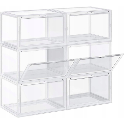 Songmics Cipősdobozok, 6 Db Egymásra Rakható Cipőrendező Átlátszó Ajtóval (LSP06CW XXX) bútor termékleírás