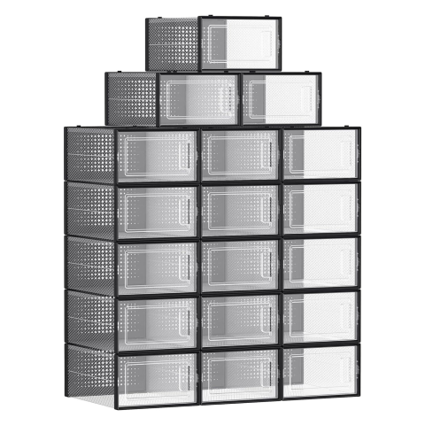 Teljes Songmics Cipőtartó Egymásra rakható cipősdobozok, műanyag cipőrendező, fekete termékleírás