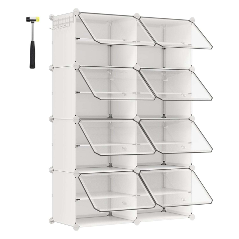 Songmics Cipőtartó, műanyag cipőtároló szekrény, 8 nyílásos moduláris tárolórendszer, fehér bútor termékleírás