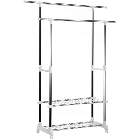 Songmics Dupla kihúzható ruhaállvány cipőpolccal, rozsdamentes szobainas, 154 x 42 x 172 cm bútor termékleírás