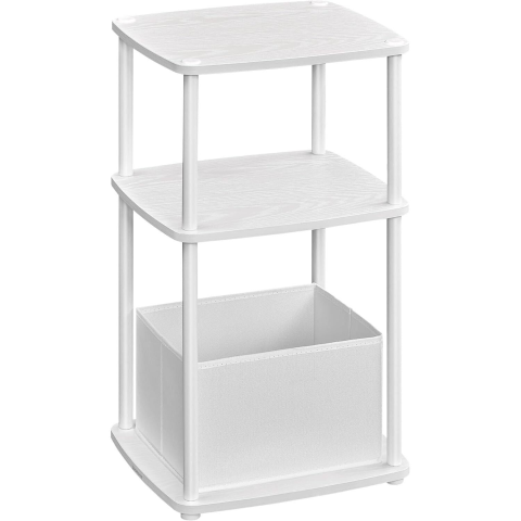 Songmics Éjjeliszekrény, asztal 3 tárolópolccal, szövetkosárral, fehér bútor termékleírás