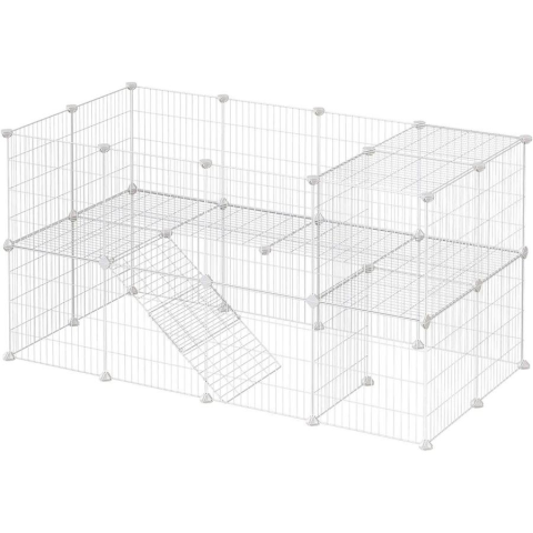 SONGMICS 2 emeletes fém kisállat járóka, 36 rácsos panel, testre szabható ketrec kisállatok számára, tengerimalacok hörcsögfuttatói, nyúlkunyhók, kalapáccsal, beltéri használatra, 143 x 73 x 71 cm, fehérEgy ház a kiskedvencének: Mindannyian szeretnénk, ha kis állatunk is úgy érezné otthon magát, mint mi. Hozzon létre egy elegáns, személyre szabott házat kedvence által kedvelt formával a fehér, 2 szintes kisállattartónak köszönhetőenPillanatok alatt készen