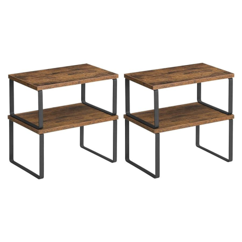 Fűszertartó, 4 db-os készlet, Konyhai állvány, Konyhai rendszerező, Bővíthető, Fűszertartó, Egymásra rakható, Fém kerettel, Tintafekete Vintage Barna: [Hol hiányzik egy polc?] Rendetlen a pultja, szekrénye vagy kamrája? Hozza haza ezt a 4 polcot, hogy bővítse tárhelyét; fűszeres üvegek, konzervek: szelídítsd meg a rendetlenséget! [Szépítse konyháját] Mi történik, ha a faanyag találkozik a tartós fémmel? Lenyűgöző konyhai polckészlet! Felteheti a pultra, ami