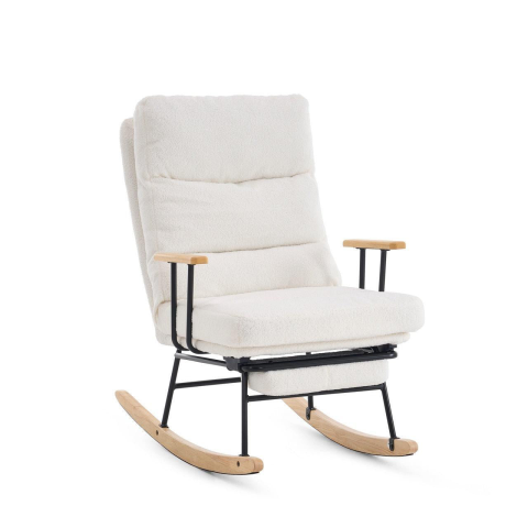 1 kép    Songmics hintaszék fa lábakkal, plüss szövettel, 4 fokozatban állítható háttámlával, fehér