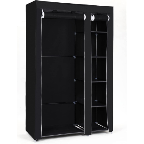 Songmics Hordozható gardrób, szövethuzatos összecsukható szekrény, fekete bútor termékleírás
