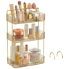 sminkrendező Forgó kozmetikai rendszerező 3. szintes kozmetikai tároló, állítható fésülködőasztalhoz, Ajándékötlet nőknek:[Stílusos és stabil] A bevonatos fémből és kiváló minőségű PET műanyagból készült sminkrendező stílusa és szilárdsága egyaránt büszkélkedhet, ideális megoldást kínálva a fésülködőasztala rendezéséhez.[Rendezett és helytakarékos] A felső polcon az alapozó, a rúzs, a parfüm és az eszközök válogatására szolgáló rekesz