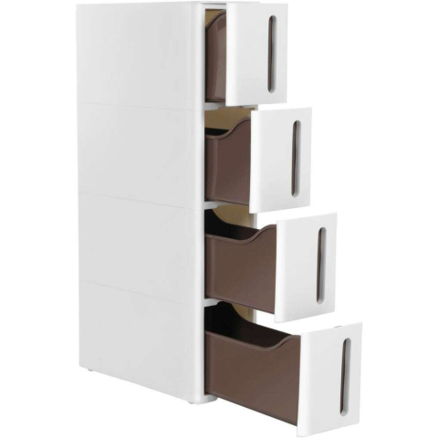 1 kép Songmics Keskeny tárolókocsi 4 fiókkal, műanyag tároló fiókok helytakarékos 45x17x83 cm, fehér