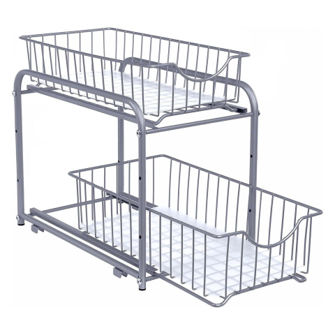 Szekrényrendező, 2 szintes mosogató alatti tárolórendszer, eltolható kosárfiókokkal, egymásra rakható szekrényrendező konyhába, fürdőszobába, ezüst Sokoldalú: Használja ezt a rendszerezőt a tárgyak rendszerezésére, kényelmes helyet alakíthat ki a mosogató alatt a mosogatószernek, vagy használhatja rozsdamentes fürdőszobai polcként szappanokhoz és piperecikkekhez. Állítható: Az oldalkereten található 4 lyuknak köszönhetően a fiókrendszerezőt a megfelelő