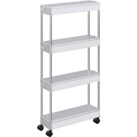 Teljes Songmics Műanyag mobilpolc, 40 × 12,5 × 88 cm, 4 polc, fehér termékleírás