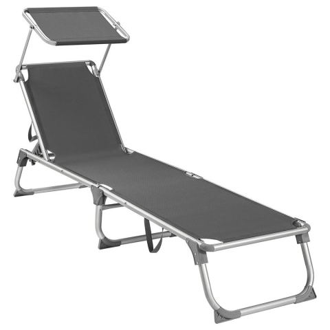 1 kép Songmics Napozóágy 55x193x31 cm, állítható napozóágy napellenzővel, füstszürke