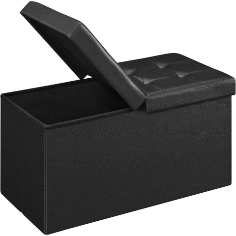 Songmics Összecsukható műbőr pad tárolóval, felnyíló fedéllel, fekete, 76x38x38 cm bútor termékleírás