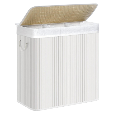 Songmics Összecsukható szennyeskosár, 3 rekeszes szennyesválogató, fehér | SONGMICS bútor termékleírás