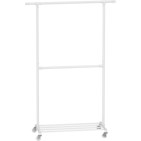 Songmics Ruhatartó kerekeken, ruhaállvány, állítható középső sínnel, fehér bútor termékleírás