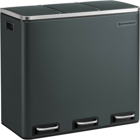 SONGMICS Sötétszürke Szelektív Szemeteskuka - 3 x 18L: Praktikus megoldás a hulladékkezelésre ♻️ Ez a stílusos és funkcionális szelektív szemeteskuka tökéletes kiegészítője konyhádnak, megkönnyítve a hulladék szétválogatását. A három különálló rekessz...