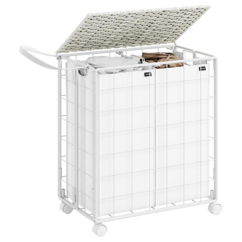 Teljes Songmics Szennyeskosár 2 rekeszes, 110L, szennyeskosár kerekekkel, fehér termékleírás