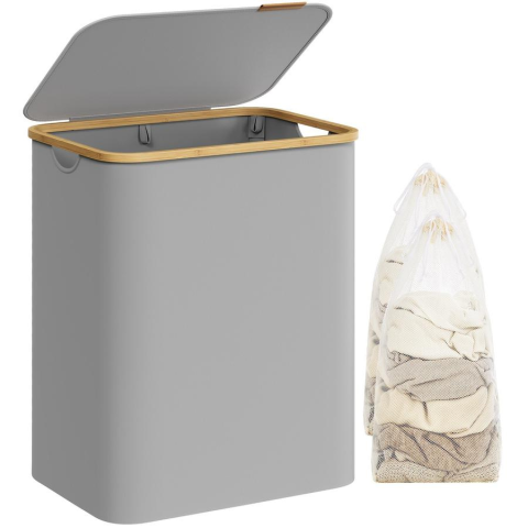 Songmics szennyeskosár fedéllel 130L, 2 rekeszes nagyméretű szennyes tartó, szürke bútor termékleírás