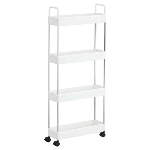 Songmics Tároló kocsi, 4 szintes keskeny résű kocsi kerekekkel, fehér bútor termékleírás