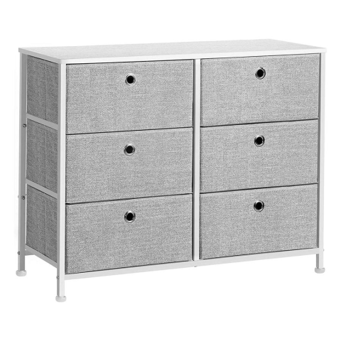 tárolószekrény 6 fiókkal a gardróbhoz, gyerekszobához, kollégiumi szobához, világosszürkeTakaros otthon: Ezzel a 6 tágas fiókkal típus szerint rendezheti az elemeket; könnyedén megszelídítheti a rendetlenséget, és visszahozhatja édes otthonába a friss érzéstKét anyag találkozása: Tökéletes keverék, amely teljes mértékben érvényesíti erősségeit - a vaskeret stabilan alátámasztja a szövetdobozokat, a szövetelem pedig puha és meleg tapintást kölcsönöz