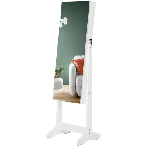 SONGMICS ékszer szekrény, álló tükör szekrény, 2 külön smink szervezővel, keret nélküli egészalakos tükör, zárható, nyaklánchoz, fülbevalóhoz, sminkhez, fehér