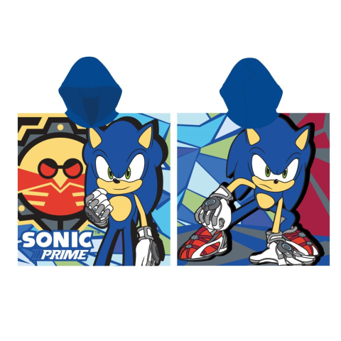 Sonic the Hedgehog, Sonic, a sündisznó poncsó gyorsan száradó anyagból gyerekeknek. Tökéletes választás a strandra. Anyaga: 100% poliészter. Méret: 55 cm x 110 cm